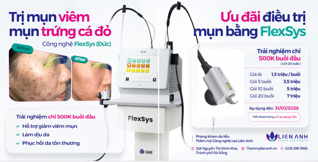 ĐIỀU TRỊ MỤN VIÊM VÀ MỤN TRỨNG CÁ ĐỎ BẰNG CÔNG NGHỆ FLEXSYS (ĐỨC)